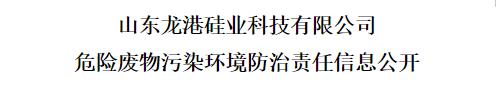 山東龍港硅業科技有限公司危險廢物污染環境防治責任信息公開